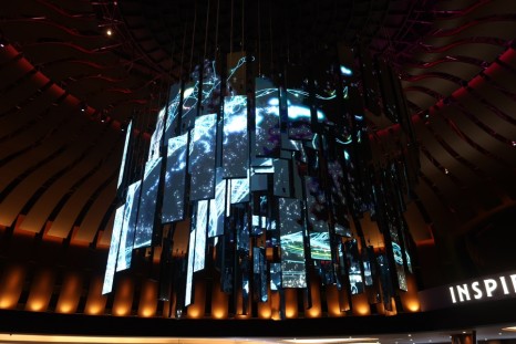 인스파이어 아레나 천장에는 대규모 전광판을 설치해 멋진 미디어파사드를 볼 수 있다. 그중에서도 '오로라'라고 불리는 쇼가 인기다. 이 쇼는 정해진 시간에 핑크 고래가 튀어나오고 별똥별이 떨어지고 참 아름답다.
