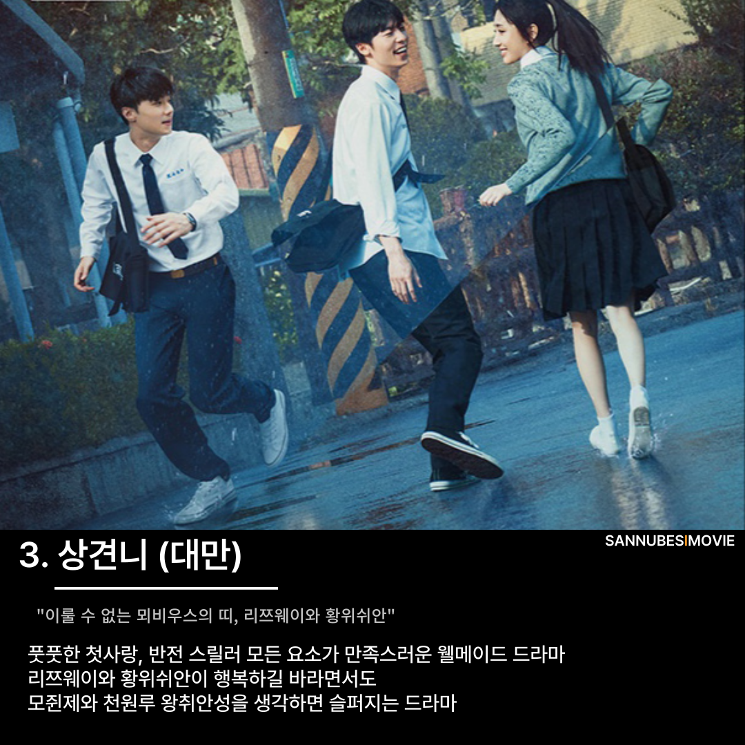 대만에서는 '상견니'가 대표적이다. 이 작품은 단순한 첫사랑의 이야기를 넘어서, 미스테리와 타임슬립, 범인 추리 등 다양한 요소를 결합해 독특한 매력을 선보인다. 상견니는 대만 드라마의 새로운 지평을 열었다.