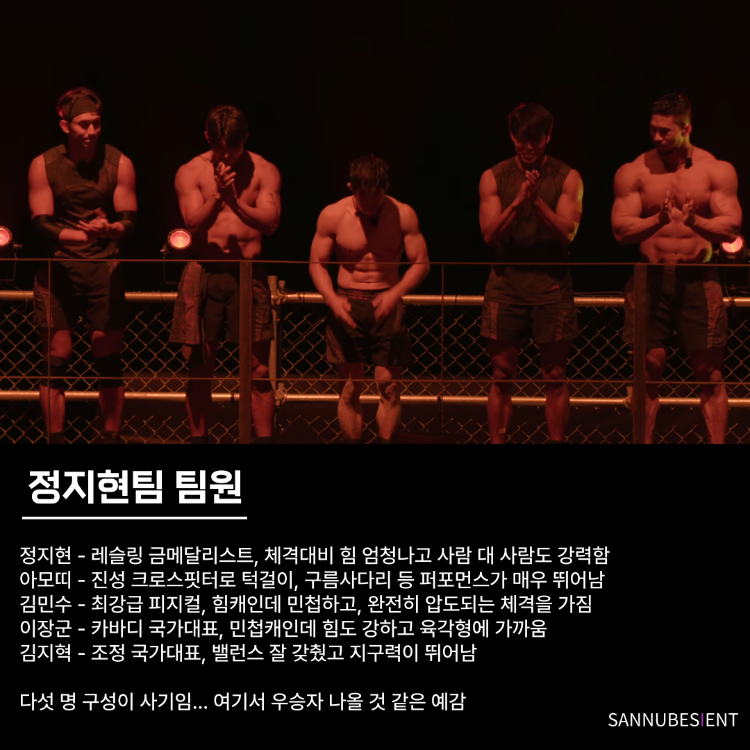 말 그대로 어벤져스가 탄생했다. 아무리 탈락자들이라곤 해도, 팀장만 4명이 있었고, 걸출한 실력을 가진 참가자들이 많았다. 정지현은 첫 픽으로 3팀 팀장 아모띠를 골랐고, 이장군과 김지혁을 골라 국가대표 라인업을 만들었다. 마지막은 힘캐이자 또 다른 리더였던 김민수를 뽑았다. 이건 질 수가 없는 멤버 구성이다.